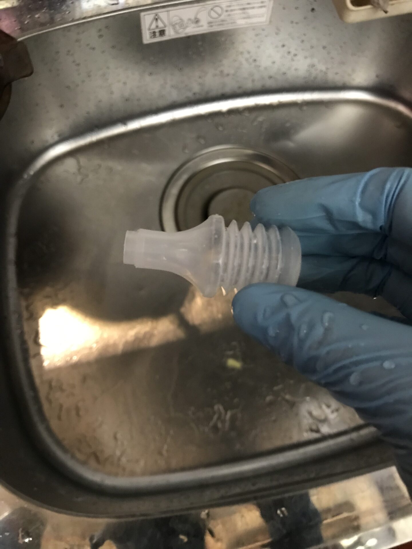 付属のコイツでフタのノズルをプシュプシュして掃除します。